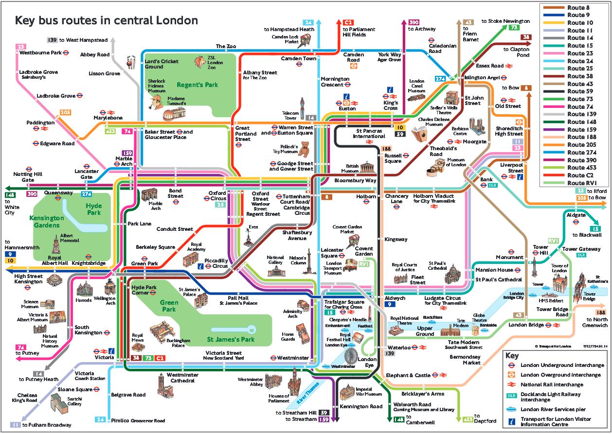 Londyńskie autobusy należą do najbardziej charakterystycznych na świecie. Niewątpliwie przejazd czerwonym piętrowcem to jedna z atrakcji Londynu. Dzieci do 11 roku życia podróżują bezpłatnie.